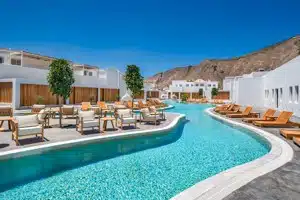 Hotel Raddison Blu Zaffron Resort ligt op 300 meter van het strand en ongeveer 4 kilometer van Thira. Er zijn meerdere zwembaden, zodat je altijd ergens verkoeling kunt zoeken. Na een fijn ontbijt kun je de Griekse yoghurt er direct weer afsporten in de gym. Ook zijn er diverse massages te boeken. Je kunt dit hotel ook op basis van halfpension boeken. Als je liever op je kamer wilt eten is er roomservice beschikbaar. Dit hotel heeft verschillende kamertypes waaronder kamers met een bubbelbad of privézwembad. Een aanrader als je een luxe adults only hotel op Santorini zoekt.